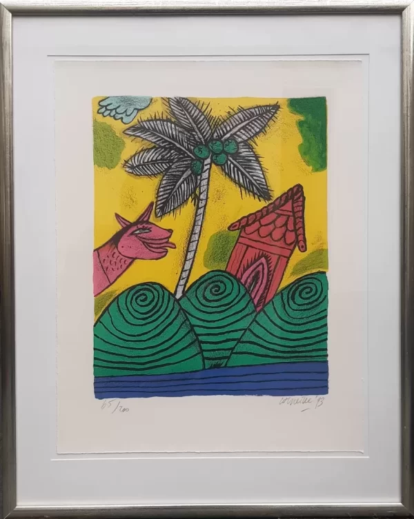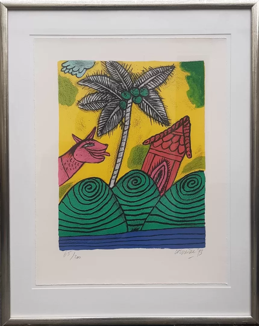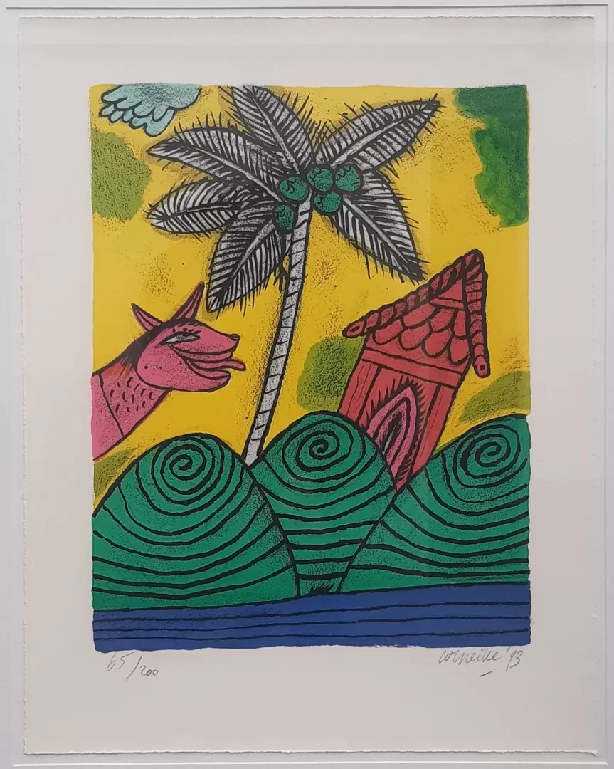 - afbeelding: één van de litho’s uit de verzamelmap Memoire de Bali van Corneille uit 1993. Corneille maakte de serie naar aanleiding van zijn reis door Bali. No 65 van 200